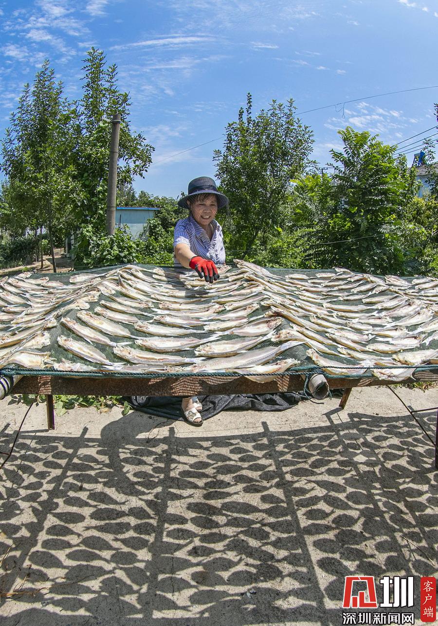 岸上,家家戶戶都在忙著晾曬剛捕撈上來(lái)的毛刀魚(yú)、小白魚(yú)和武昌魚(yú)。