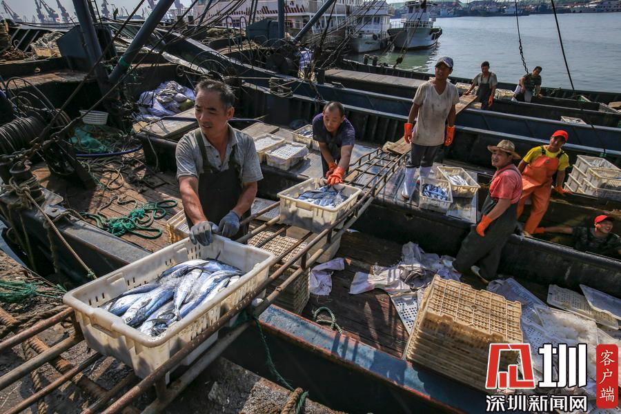 連日來(lái),山東日照嵐山中心漁港迎來(lái)秋捕高產(chǎn)期,鲅魚(yú)、帶魚(yú)、鯧魚(yú)、螃蟹等種類(lèi)豐富的海產(chǎn)品大量上岸,漁民抓緊時(shí)間分揀裝運(yùn),保障節(jié)日市場(chǎng)海鮮供應(yīng)。