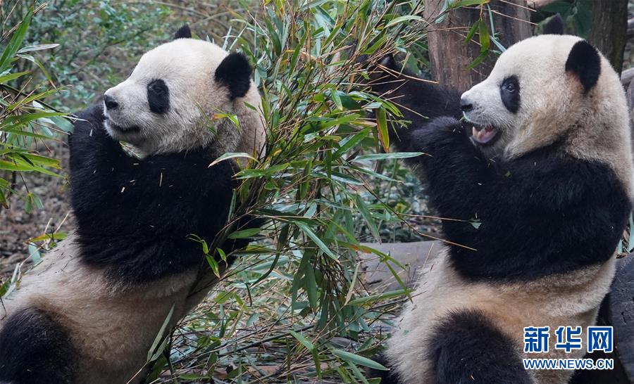 這是1月1日在成都大熊貓繁育研究基地拍攝的大熊貓。 新華社記者 李夢馨 攝