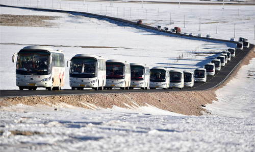 2019年12月23日拍攝的西藏那曲市雙湖縣牧民的遷徙車隊。西藏那曲市雙湖縣嘎措鄉(xiāng)、措折羌瑪鄉(xiāng)、雅曲鄉(xiāng)共2900人,告別了平均海拔5000米的家鄉(xiāng),經(jīng)過近千公里搬遷到海拔相對較低的藏南雅魯藏布江南岸的貢嘎縣境內(nèi)。這是西藏自治區(qū)近年來實施的極高海拔生態(tài)搬遷項目之一,雙湖縣三個鄉(xiāng)的整體搬遷是其中人數(shù)最多、跨度最遠的一次搬遷。新華社記者覺果攝