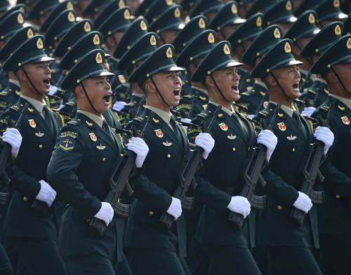 2019年10月1日,慶祝中華人民共和國成立70周年大會在北京天安門廣場隆重舉行。這是陸軍方隊接受檢閱。新華社記者劉瀟攝