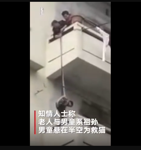 險(xiǎn)!老太用繩子綁孫子從5樓吊至3樓救貓 網(wǎng)友:孫子是買(mǎi)貓送的?