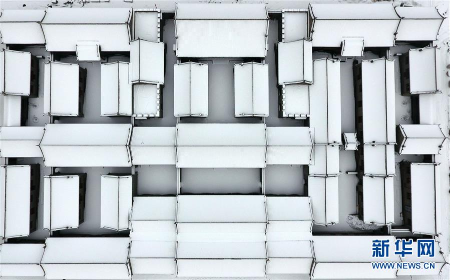 這是1月7日拍攝的太原古縣城(無人機照片)。當日,山西省太原市迎來降雪,雪后的太原古縣城銀裝素裹,美景如畫。太原古縣城是晉陽古城遺址的一部分,因其整體格局如同振翅高翔的鳳凰,也被稱為“鳳凰城”。新華社記者曹陽攝