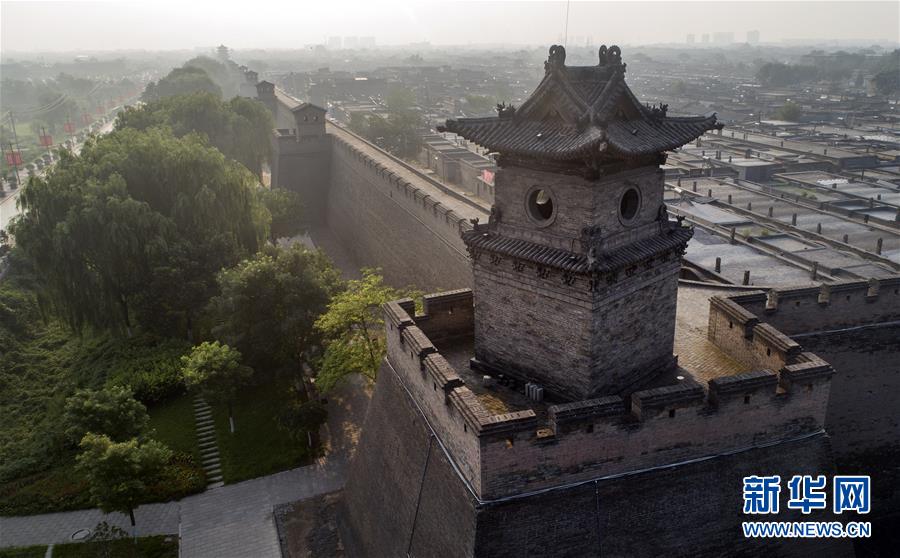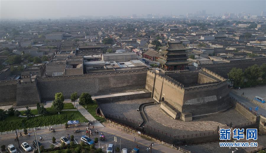 這是7月20日無人機拍攝的平遙古城北門。