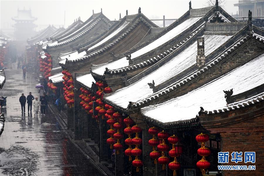 1月5日,游人在平遙古城街道上游覽。新華社記者詹彥攝