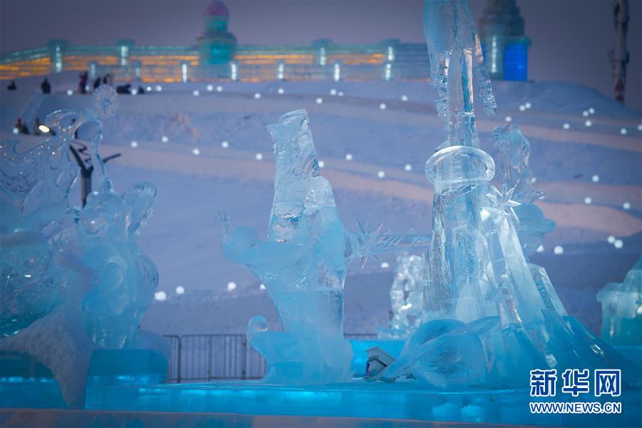 冰雕師在哈爾濱冰雪大世界內(nèi)雕刻出主題各異的冰雕作品(1月8日攝)。新華社記者王松攝