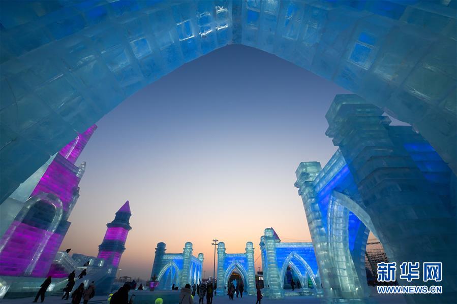 這是哈爾濱冰雪大世界園區(qū)中的景觀(1月5日攝)。每到冬季,天氣寒冷的冰城哈爾濱陸續(xù)迎來各類冰雕雪雕賽事。從2019年12月7日起,采冰工人們?nèi)找共杀\冰、冰景雪雕藝術(shù)家精心雕琢,這些“冰雪造夢者”們在嚴(yán)寒天氣中辛苦付出,讓一座“冰雪之城”在松花江畔拔地而起,向來自世界各地的游客展現(xiàn)浪漫絢麗的冰雪奇觀。新華社記者王松攝