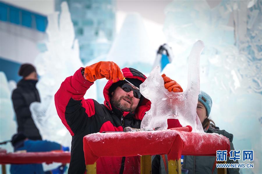 1月6日,參賽者在創(chuàng)作冰雕。新華社記者王松攝
