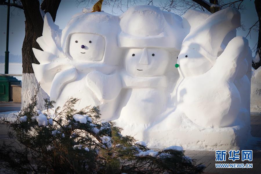 這是哈爾濱市的松花江畔的雪人(1月2日攝)。新華社記者王松攝