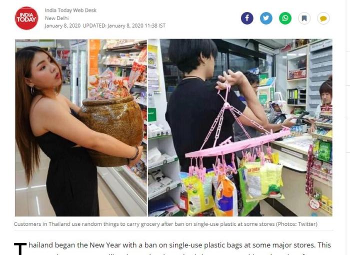 泰國人用各種創(chuàng)新的方式來裝購買的物品。來源:《今日印度》報道頁面截圖