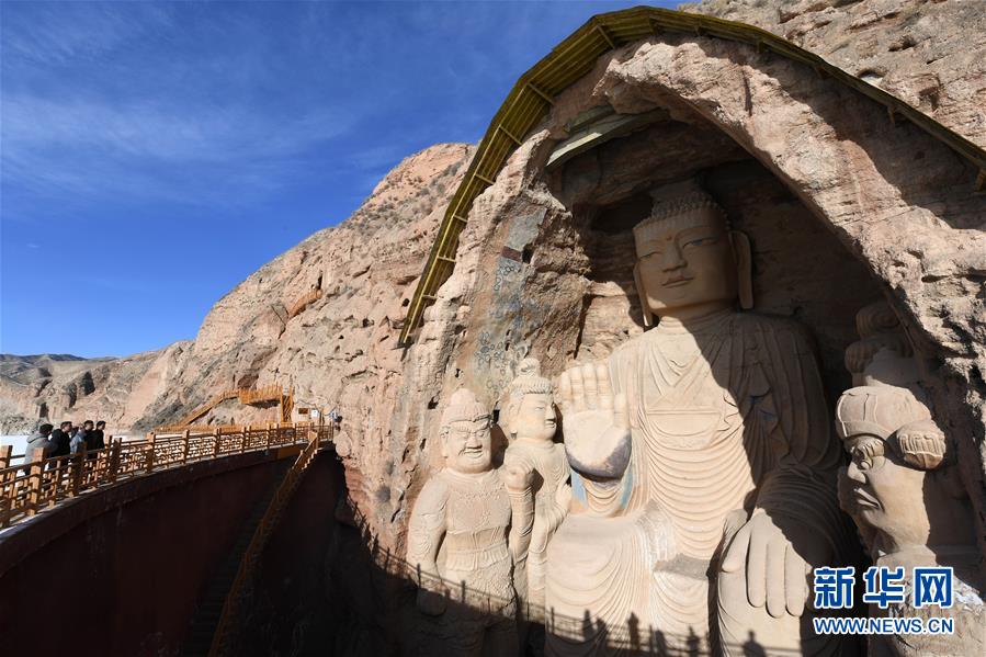12月26日,游客在麥積山石窟參觀游覽。新華社記者馬寧攝