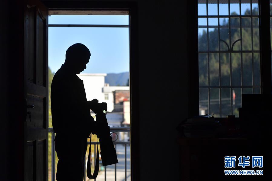 陳志高在保護站內(nèi)查看近幾日拍攝的照片(1月8日攝)。