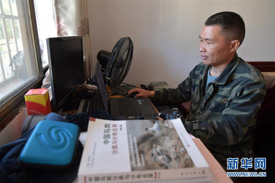 在江西九連山國(guó)家級(jí)自然保護(hù)區(qū)潤(rùn)洞保護(hù)站,陳志高在電腦上查看拍攝的照片(1月8日攝)。新華社記者 彭昭之 攝
