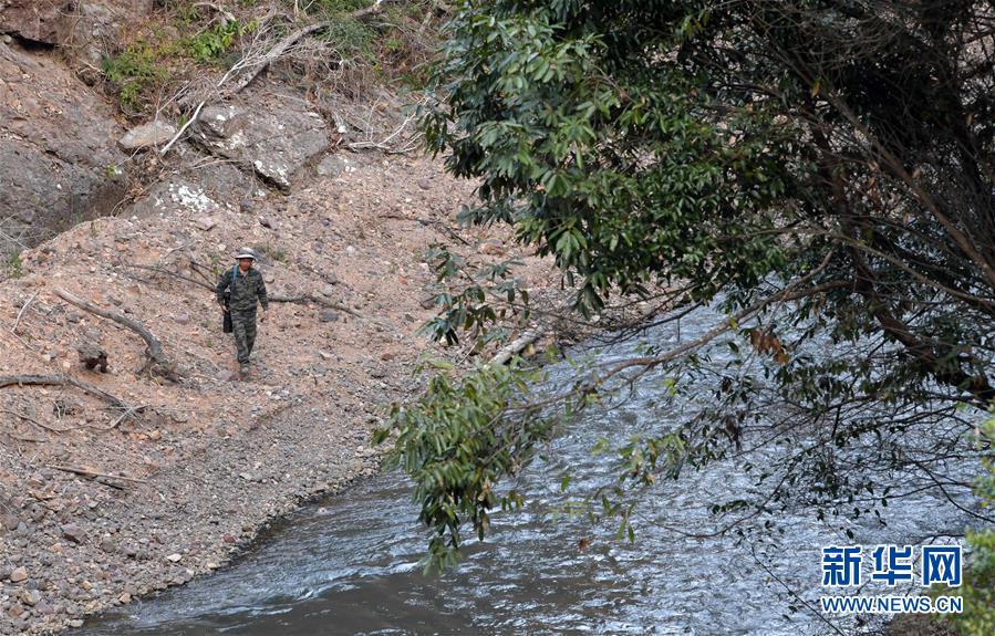在江西九連山國(guó)家級(jí)自然保護(hù)區(qū),陳志高帶著他的相機(jī)準(zhǔn)備過(guò)一條小河進(jìn)入密林深處拍攝鳥(niǎo)類(1月8日攝)。新華社記者 彭昭之 攝