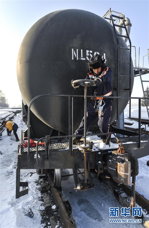 林海間的“送水小火車(chē)” 調(diào)車(chē)員對(duì)“送水小火車(chē)”進(jìn)行出行前的檢查作業(yè)(1月17日攝)。新華社記者 許暢 攝