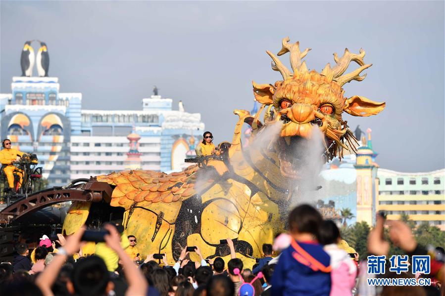 1月18日,大型機(jī)械裝置藝術(shù)品“龍馬精神”在珠海長(zhǎng)隆海洋王國(guó)巡游展示。新華社記者 劉大偉 攝