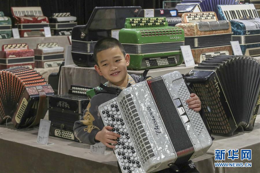 塔城市手風(fēng)琴博物館里展出的產(chǎn)自俄羅斯的手風(fēng)琴(1月21日攝)。新華社記者 趙戈 攝