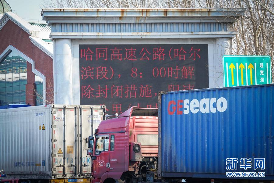 2月24日,工作人員在哈同高速公路哈爾濱收費站為車輛人員登記。 新華社記者 王松 攝