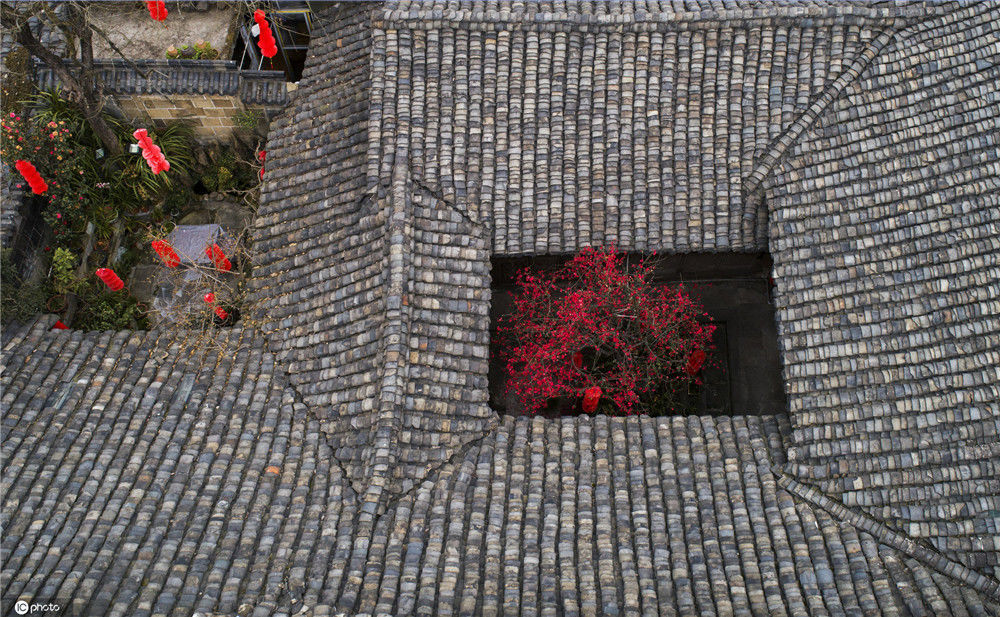 2020年2月14日,初春時(shí)節(jié),陽(yáng)光明媚。四川閬中古城地標(biāo)中天樓旁的張家小院天井中的海棠樹(shù)繁花似錦。四川省重點(diǎn)文物保護(hù)單位張家小院這道“火熱”的風(fēng)景,是當(dāng)?shù)睾芏嗳说南蛲屯獾赜慰碗y忘的記憶。王玉貴/IC photo