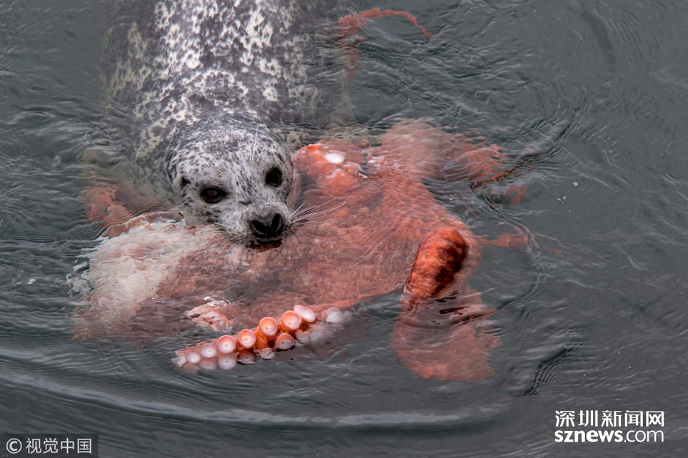 當(dāng)?shù)貢r(shí)間2015年2月12日,加拿大奧格登角,一只海豹與一只巨大的章魚死戰(zhàn)。這場惡戰(zhàn)最終以海豹的勝利而告終。商人Bob Ianson日前在與家人旅行時(shí),意外拍到巨型章魚與海豹搏斗的全過程。