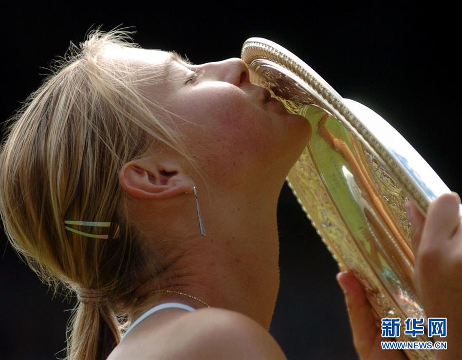 圖為2004年7月3日,莎拉波娃在溫布爾登網球錦標賽女單決賽中戰(zhàn)勝美國選手小威廉姆斯,奪得冠軍。