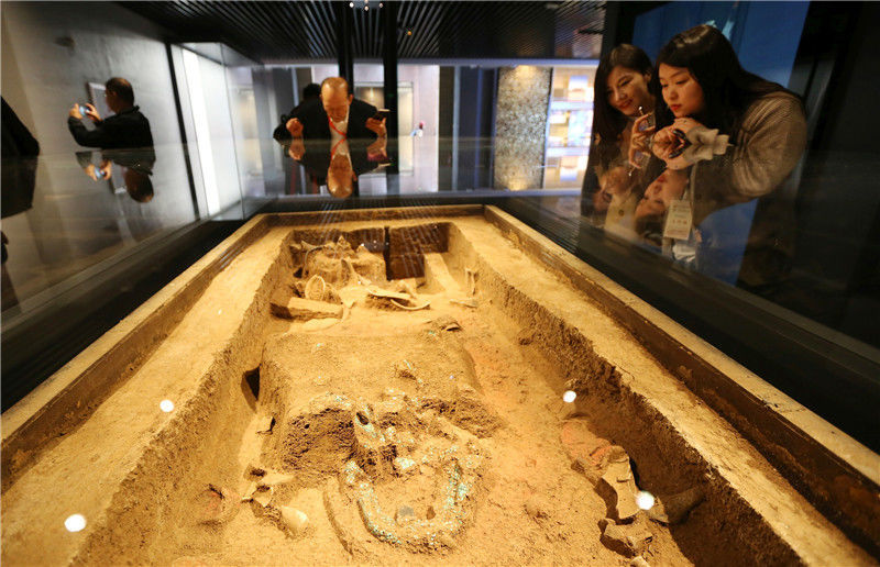 2019年10月19日,河南洛陽,二里頭夏都遺址博物館。觀眾在觀看當(dāng)年的考古現(xiàn)場。