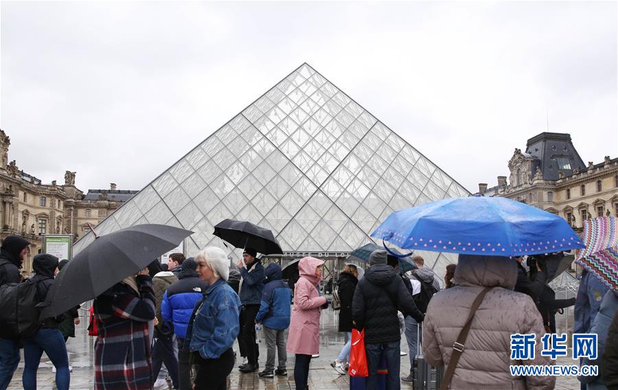 3月2日,在法國巴黎,人們?cè)诒R浮宮外了解開館信息。新華社記者 高靜 攝
