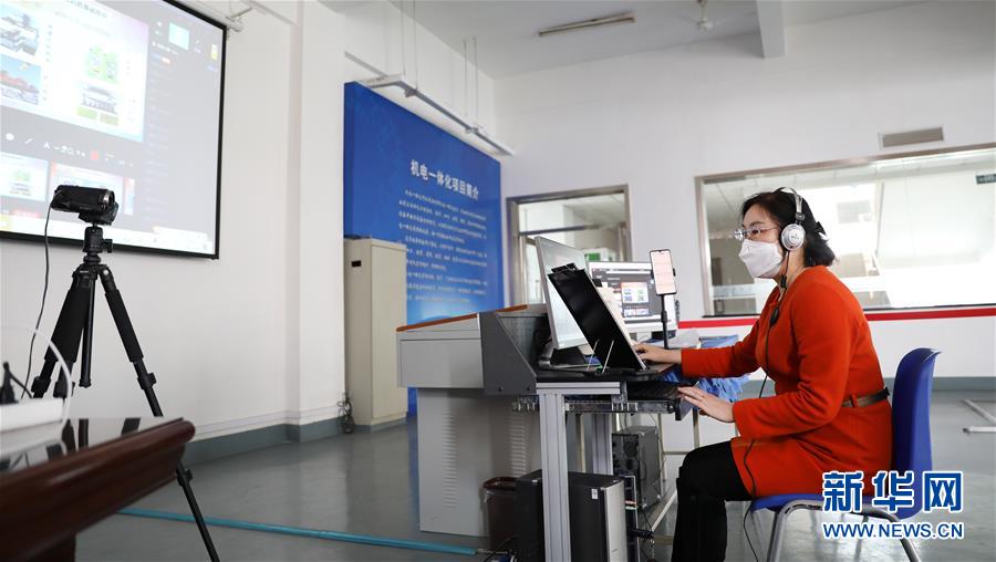 3月4日,職教城內(nèi)的鞍山市技師學院的王曉娜老師為學生進行機電一體化網(wǎng)絡(luò)授課。遼寧省鞍山市職教城內(nèi)的各類職業(yè)教育學校從3月2日恢復網(wǎng)絡(luò)授課以來,教師們設(shè)置了豐富多彩的課程,提高1萬余名學生線上學習的積極性。新華社記者 姚劍鋒 攝