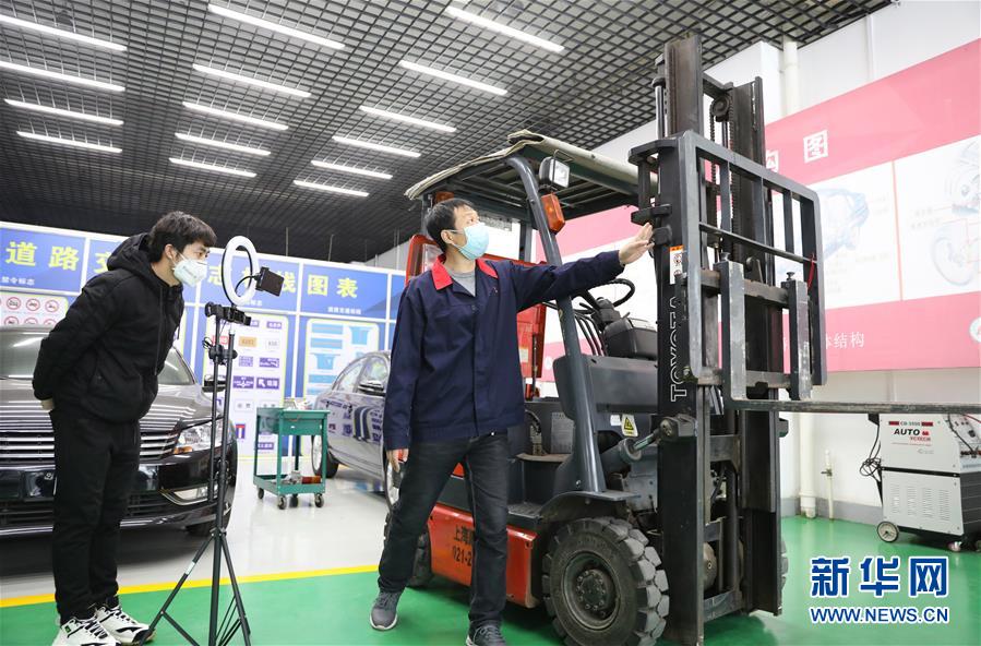 3月4日,職教城內(nèi)的鞍山市交通運輸學校的楊永祥老師為學生進行物流叉車實訓網(wǎng)絡(luò)授課。遼寧省鞍山市職教城內(nèi)的各類職業(yè)教育學校從3月2日恢復網(wǎng)絡(luò)授課以來,教師們設(shè)置了豐富多彩的課程,提高1萬余名學生線上學習的積極性。新華社記者 姚劍鋒 攝
