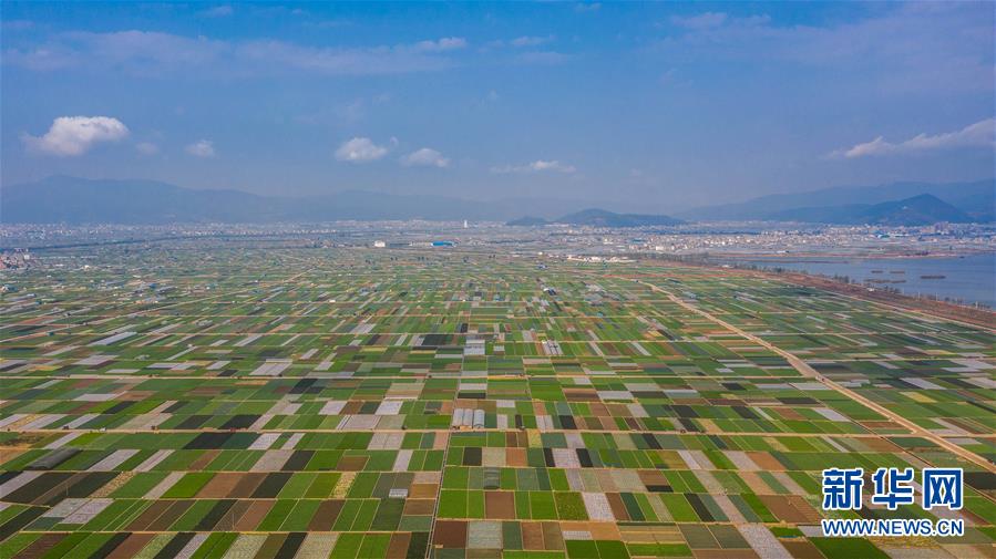 這是云南省玉溪市通海縣的田園風(fēng)光(3月4日攝,無(wú)人機(jī)照片)。新華社記者 胡超 攝