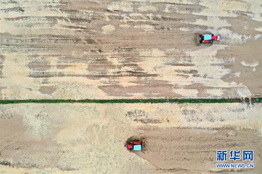 江西省南昌市南昌縣蔣巷鎮(zhèn)農(nóng)民駕駛拖拉機(jī)進(jìn)行春耕翻地作業(yè)(無人機(jī)照片,2月28日攝)。新華社記者 彭昭之 攝