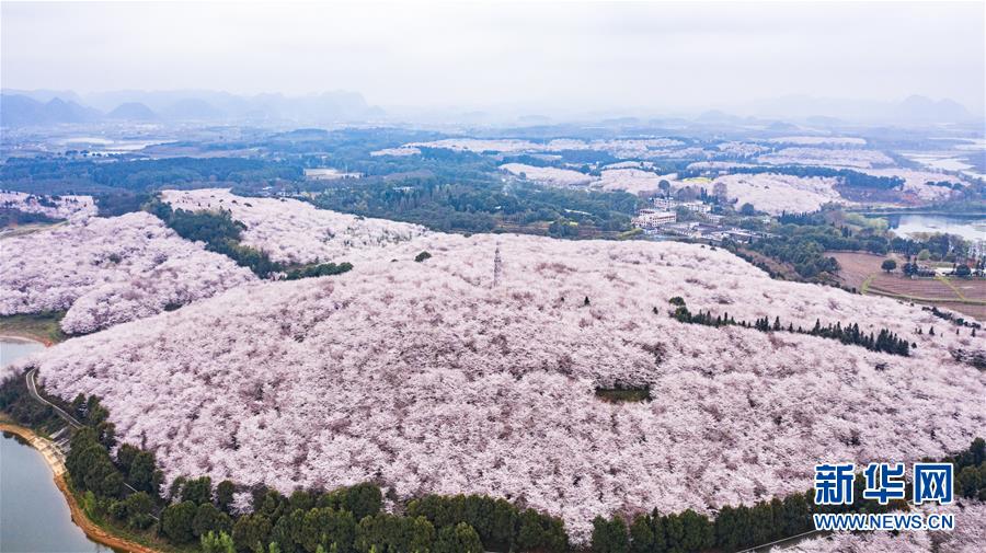 3月12日拍攝的貴安新區(qū)櫻花觀光園風(fēng)景(無(wú)人機(jī)照片)。 近日,貴州省貴安新區(qū)櫻花觀光園內(nèi)櫻花競(jìng)相盛開(kāi),花團(tuán)錦簇間春意盎然。據(jù)介紹,疫情防控期間,為避免人群聚集,櫻花園暫不接待游客。 新華社記者 陶亮 攝