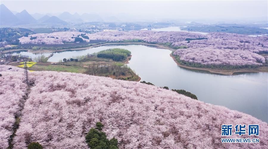 3月12日拍攝的貴安新區(qū)櫻花觀光園風景(無人機照片)。 近日,貴州省貴安新區(qū)櫻花觀光園內(nèi)櫻花競相盛開,花團錦簇間春意盎然。據(jù)介紹,疫情防控期間,為避免人群聚集,櫻花園暫不接待游客。 新華社記者 陶亮 攝