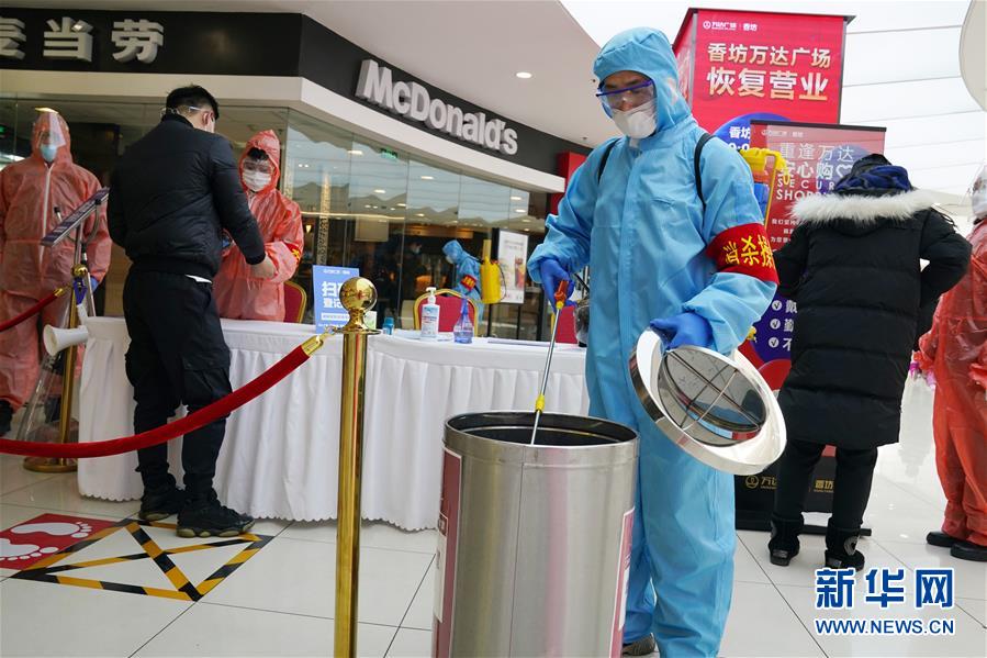 3月13日,在哈爾濱香坊萬達(dá)廣場(chǎng)內(nèi),工作人員在給垃圾桶消毒。 近日,哈爾濱市多家大型商場(chǎng)陸續(xù)恢復(fù)營(yíng)業(yè)。這些恢復(fù)營(yíng)業(yè)的商場(chǎng)采取多種措施,從嚴(yán)細(xì)致做好疫情防控和安全風(fēng)險(xiǎn)防范工作,為廣大顧客提供安全放心的購物空間。 新華社記者 王建威 攝
