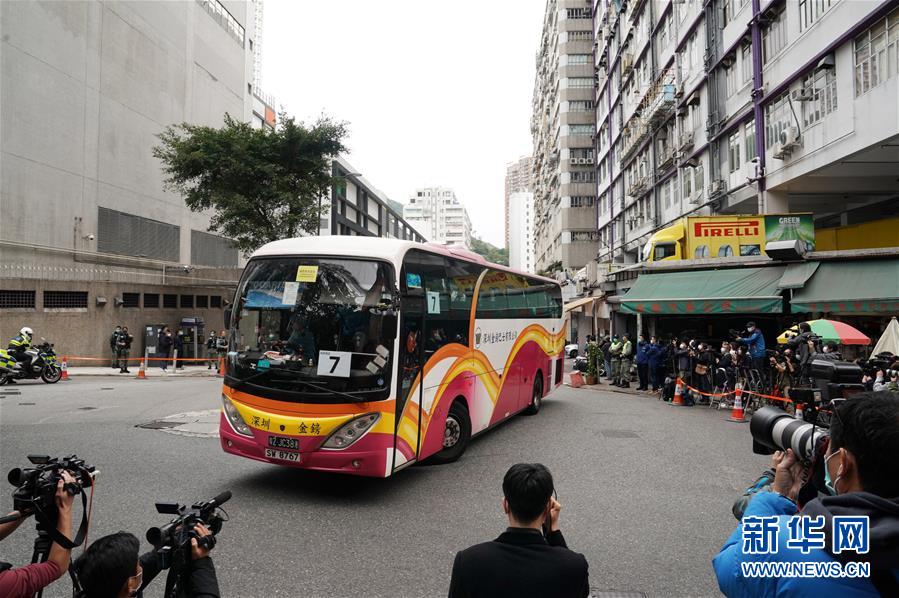 2月20日,首批被接回的香港居民乘坐專車,前往特區(qū)政府設立在新界的火炭駿洋邨檢疫營。新華社記者呂小煒攝