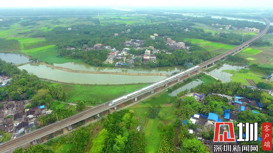 2020年3月17日,海南環(huán)島鐵路一列動(dòng)車(chē)從春光明媚的瓊海城區(qū)經(jīng)過(guò)。