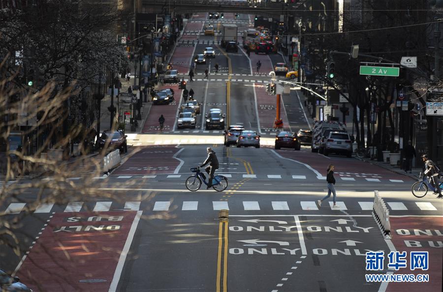 3月21日,在美國紐約,以往繁忙的街道上車輛寥寥。美國紐約州、伊利諾伊州、康涅狄格州20日發(fā)布針對本州居民的“居家令”,以遏制新冠病毒傳播。這些“居家令”涵蓋紐約、洛杉磯、芝加哥等大城市,影響數(shù)千萬人。白宮20日發(fā)表聲明說,總統(tǒng)特朗普已宣布紐約州出現(xiàn)“重大災(zāi)難”,命令聯(lián)邦政府支援該州抗擊新冠肺炎疫情。新華社記者王迎攝
