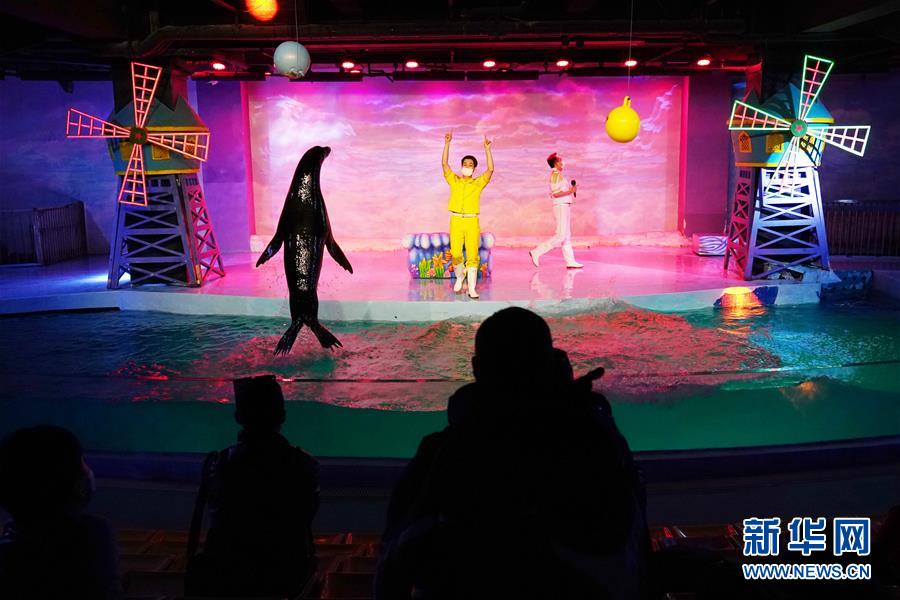 3月23日,游客在哈爾濱極地館觀(guān)看海獅表演。當(dāng)日,哈爾濱極地館恢復(fù)營(yíng)業(yè)。目前,極地館日接待人數(shù)不超過(guò)400人,園區(qū)采取分時(shí)段、間隔性辦法安排游客有序入園。游客實(shí)名預(yù)訂門(mén)票,入園要配合測(cè)溫、佩戴口罩、掃描“龍江健康碼”,刷身份證入館。新華社記者王建威攝