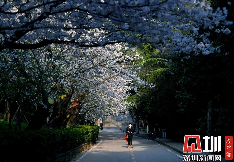 3月14日,游客在武漢東湖磨山櫻園游玩。近日氣溫漸升,武漢東湖磨山櫻園里的櫻花漸次盛開,帶來春天的氣息。新華社記者熊琦攝