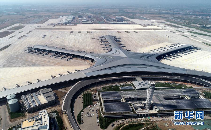 2019年6月12日無人機拍攝的建設(shè)中的青島膠東國際機場。新華社記者李紫恒攝