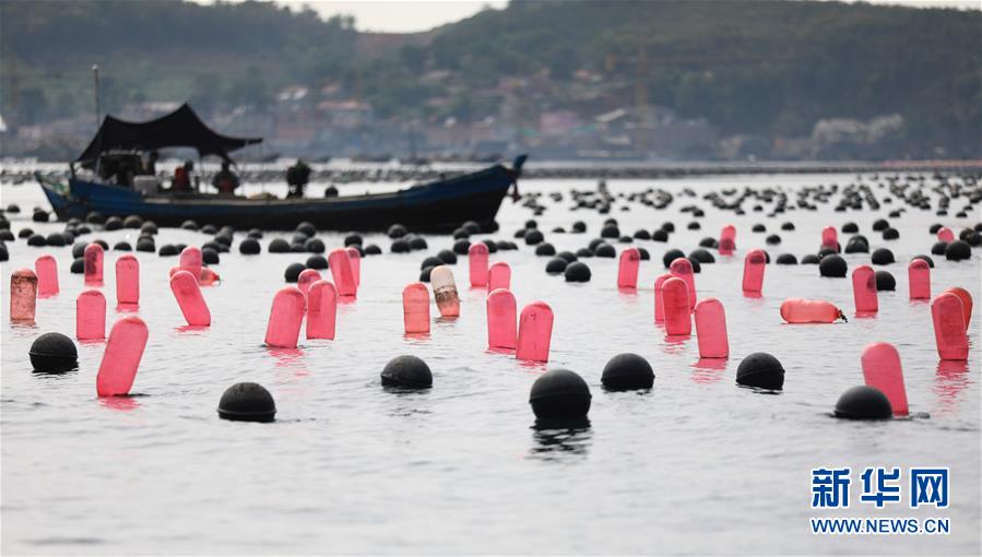 漁民在海洋牧場上工作(7月8日攝)。新華社記者姚劍鋒攝