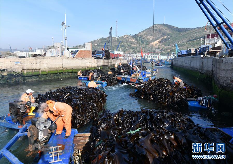 場(chǎng)面壯觀!山東威海收割海帶