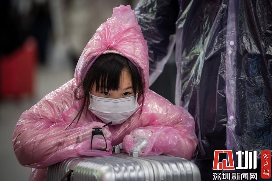 3月28日,在漢口火車站,一名小朋友幫家長提行李出站。新華社記者肖藝九攝