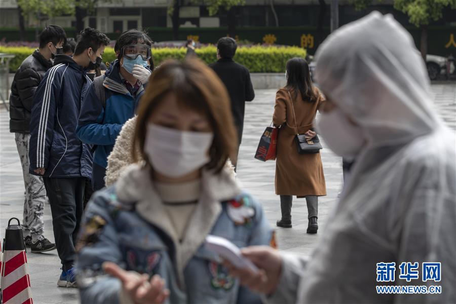 3月30日,顧客排隊進入武商國際廣場。當日,武漢市多家商場開門迎客。新華社記者費茂華攝