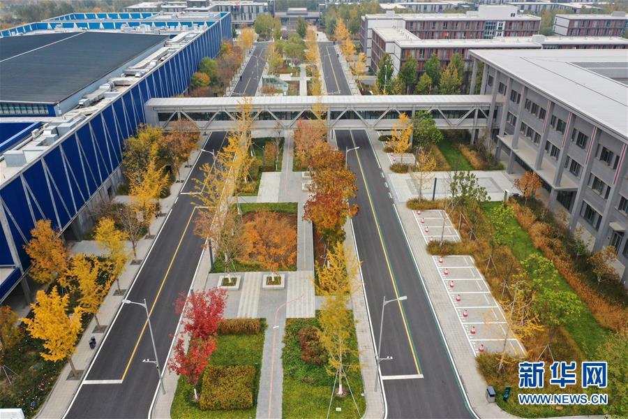 11月6日拍攝的雄安新區(qū)市民服務(wù)中心(無人機(jī)拍攝)。深秋時節(jié)的雄安新區(qū)色彩斑斕,景色宜人。新華社記者邢廣利攝