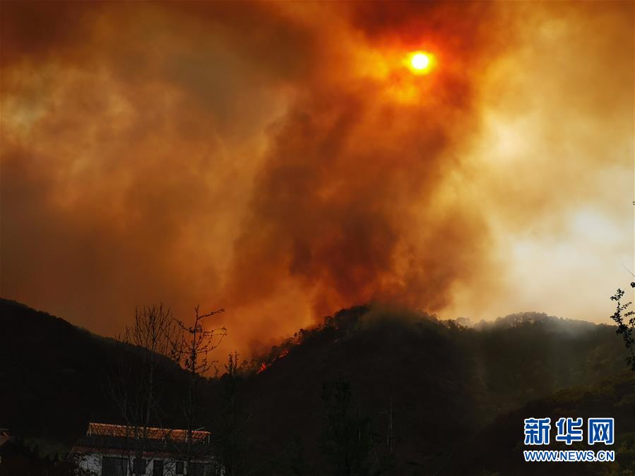 這是3月31日在四川省西昌市邛海畔拍攝的瀘山火場畫面。新華社記者惠小勇攝