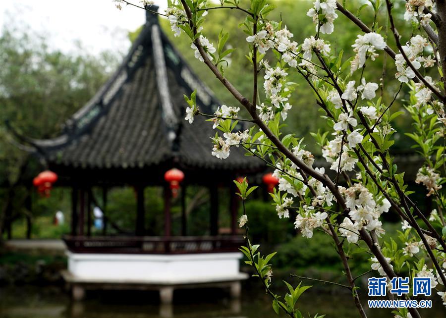 在位于上海松江的江南古典園林——醉白池,春花與古建筑相映襯(4月6日攝)。清明假期,上海的古典園林景點(diǎn)在做好防疫措施的同時(shí),有序開(kāi)放運(yùn)營(yíng)。在粉墻黛瓦、春色滿(mǎn)園中,游人們欣賞濃濃春意,感受古色古香。 新華社記者 劉穎 攝