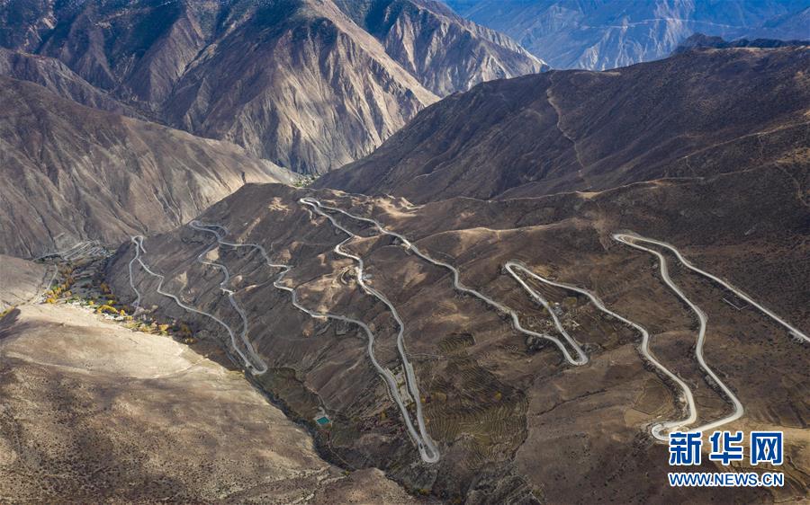 這是“怒江72拐”,該處位于西藏自治區(qū)昌都市八宿縣境內(nèi),是川藏線上一段艱險(xiǎn)與美景并存的山路(10月23日無人機(jī)拍攝)。全長(zhǎng)2000多公里的川藏公路,從成都開始,一路向西到終點(diǎn)拉薩,在橫斷山脈、喜馬拉雅山脈和念青唐古拉山脈間蜿蜒盤旋,因海拔落差大,彎道眾多,形成天路奇觀。川藏公路1954年12月25日通車,65年來,國(guó)家對(duì)川藏公路進(jìn)行了大規(guī)模改造升級(jí),建設(shè)了眾多橋梁和隧道,行車條件得到明顯改善。新華社記者江宏景攝