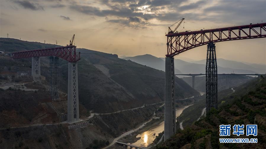 4月8日清晨,工人在中老鐵路元江特大橋上進(jìn)行鋼桁梁架設(shè)作業(yè)(無(wú)人機(jī)照片)。4月7日,中老鐵路全線(xiàn)重點(diǎn)控制性工程——元江特大橋迎來(lái)關(guān)鍵節(jié)點(diǎn),主橋鋼桁梁正式“邁”過(guò)154米高的主橋墩,這是世界同類(lèi)鐵路橋梁第一高墩。元江特大橋位于云南省元江縣,采用上承式連續(xù)鋼桁梁跨越峽谷,全長(zhǎng)832.2米,建成后,其249米的主跨也將刷新國(guó)內(nèi)同類(lèi)橋梁跨度紀(jì)錄。新華社記者江文耀攝
