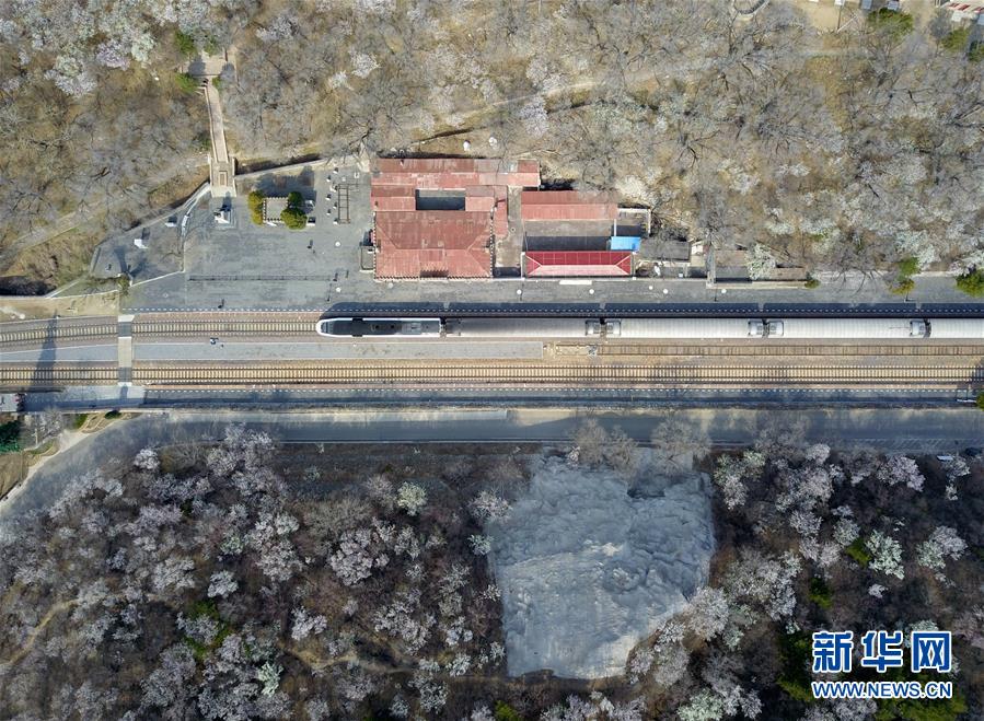 4月8日,北京青龍橋火車站附近春花盛開(無人機(jī)照片)。 新華社記者張晨霖?cái)z